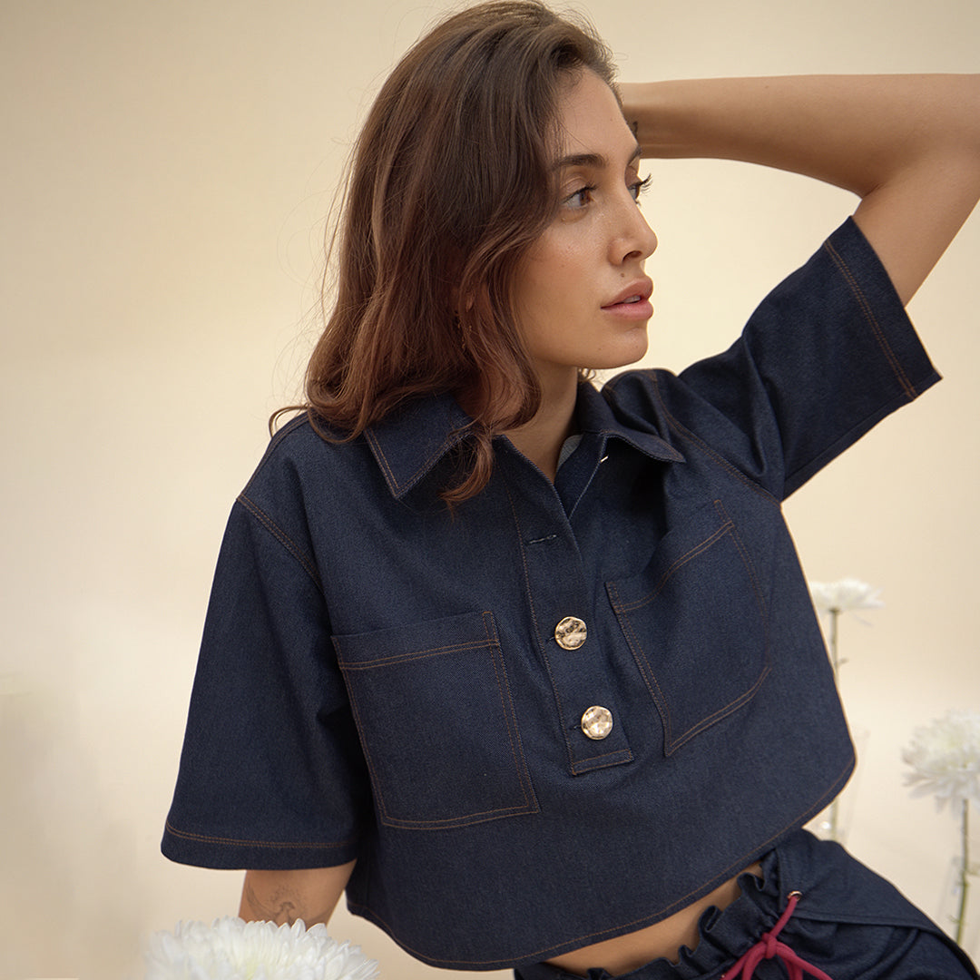 An effortless denim overshirt crafted from a heavy cotton twill with a structured yet comfortable hand-feel. Designed with a relaxed silhouette that layers with ease, it moves seamlessly from everyday outfitting to a more considered look when styled as the matching set. Intentional and versatile, this is a refined wardrobe staple made for repeat wear.