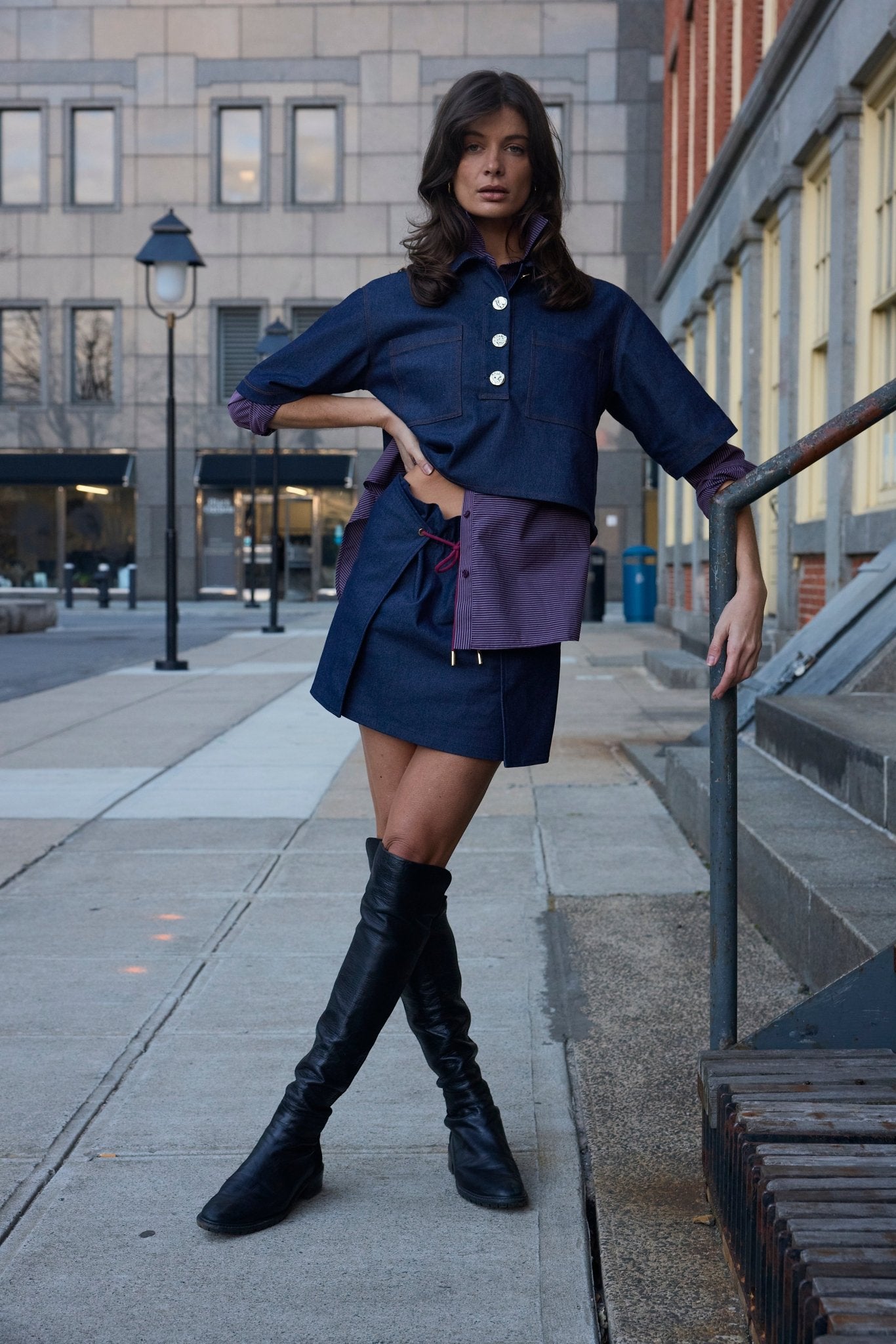Relaxed denim Over shirt silhouette with easy layering length