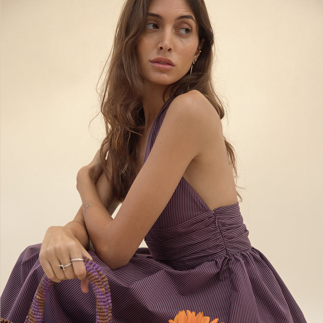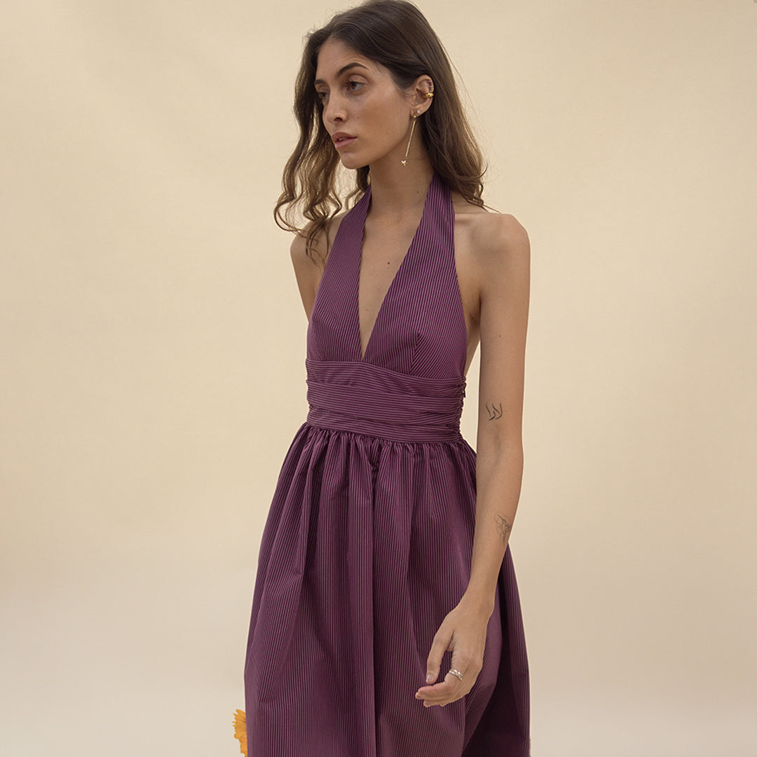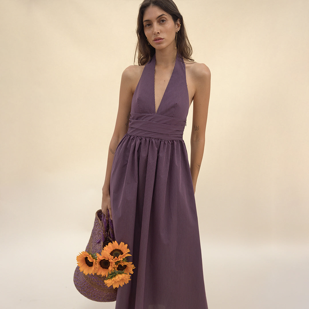 Puna Halter Dress – Purple Stripe