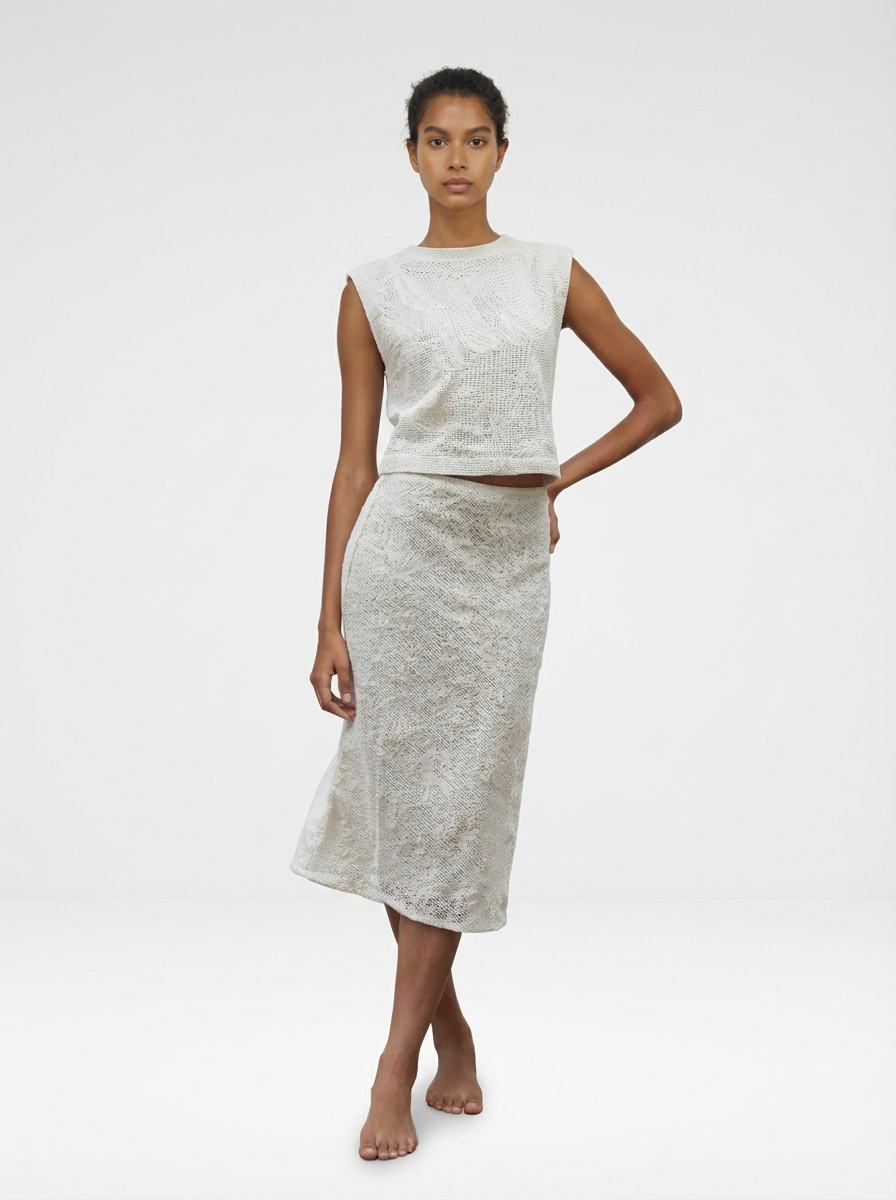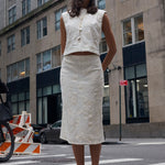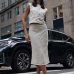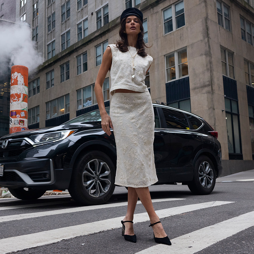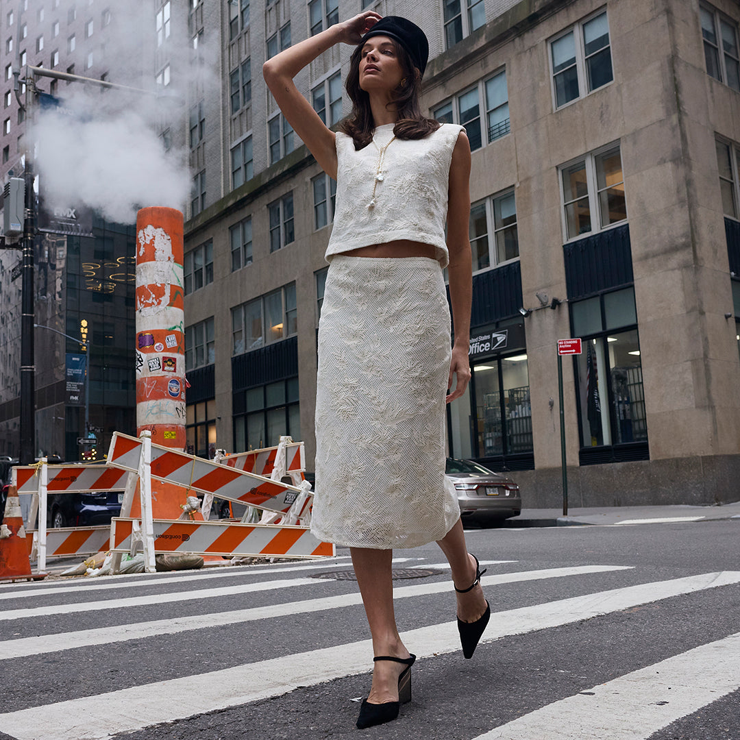 Cut to softly sculpt the body, the Jones Slip Skirt is designed in cotton lace with a refined, lined finish. The bias-cut silhouette skims the hips with gentle structure, allowing it to move seamlessly from polished workdays to event-ready moments when styled as a set with the Lou Top. Sophisticated and versatile, this is an elevated lace skirt made to adapt to every occasion.