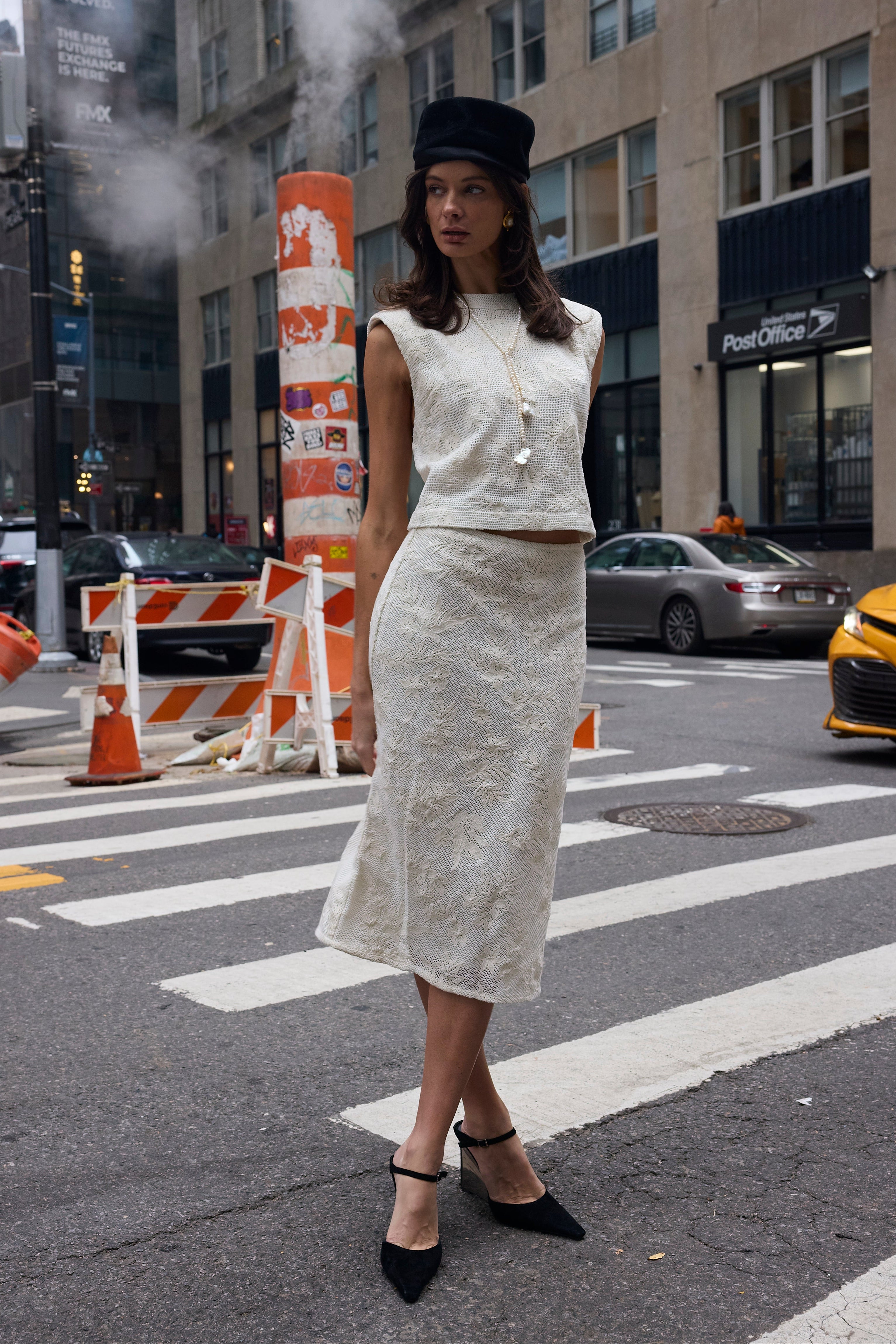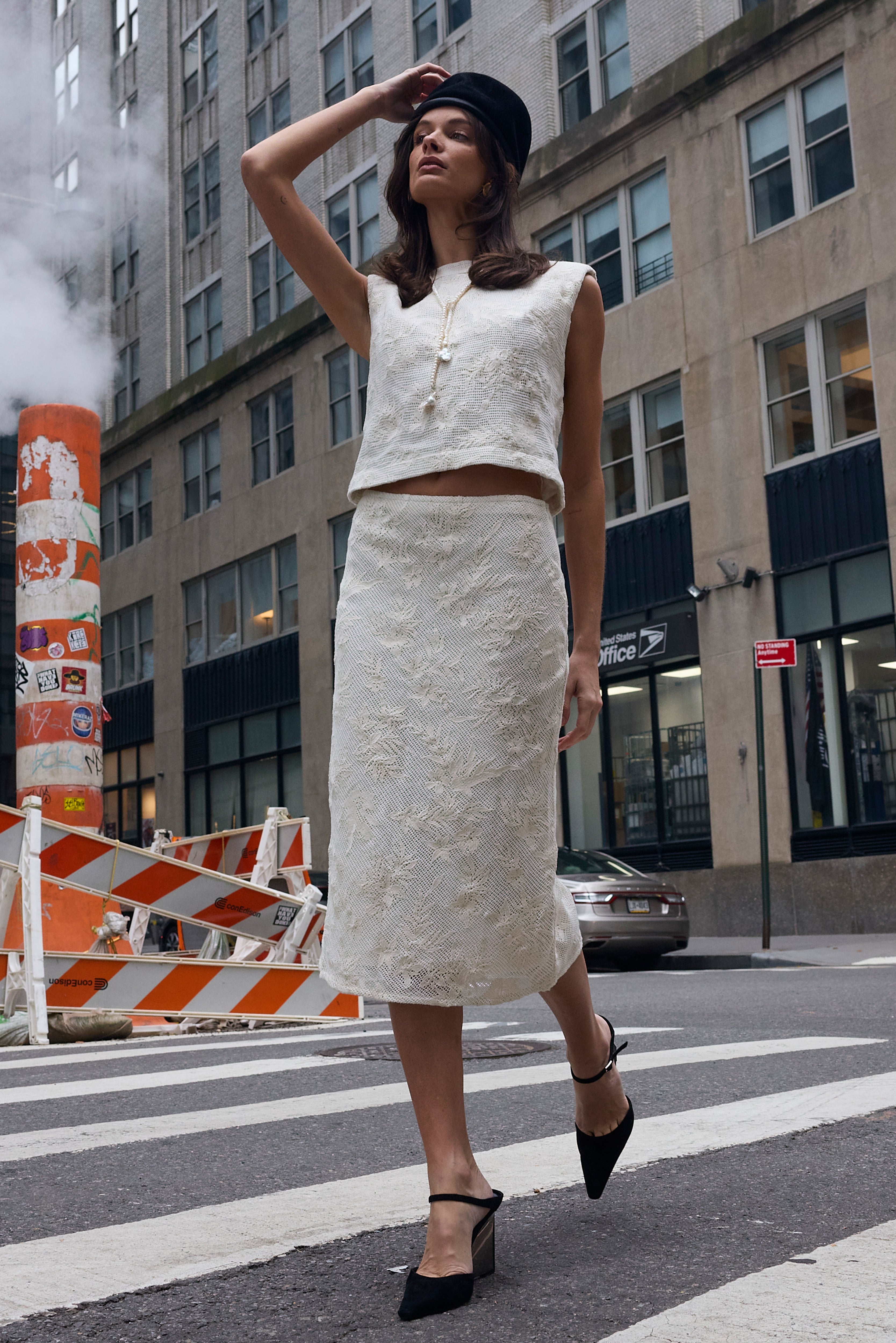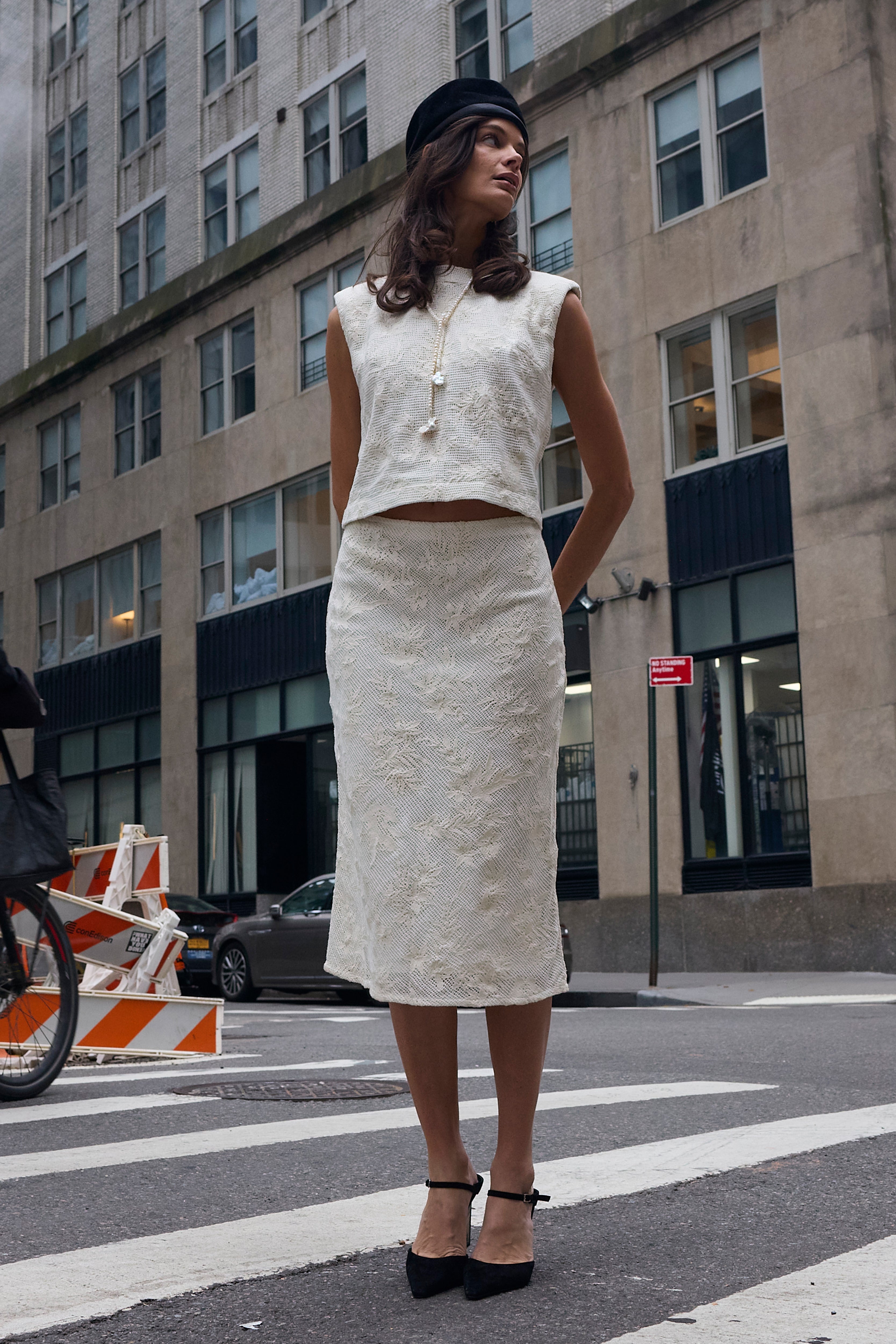 Cut to softly sculpt the body, the Jones Slip Skirt is designed in cotton lace with a refined, lined finish. The bias-cut silhouette skims the hips with gentle structure, allowing it to move seamlessly from polished workdays to event-ready moments when styled as a set with the Lou Top. Sophisticated and versatile, this is an elevated lace skirt made to adapt to every occasion.