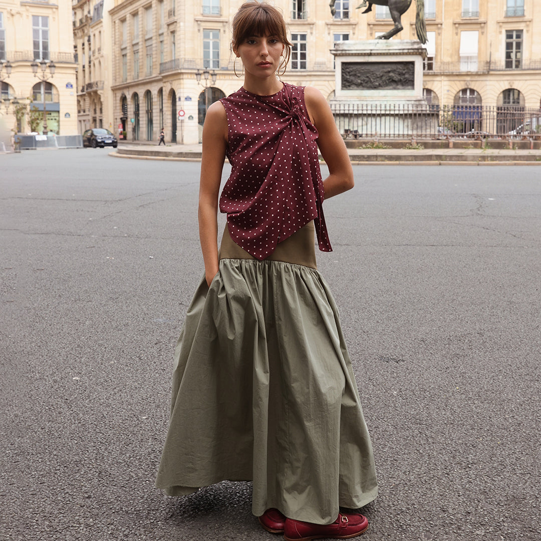 The Jude Block Maxi Skirt is your go-to for polished ease, balancing dramatic volume with thoughtful detail and all-day comfort.