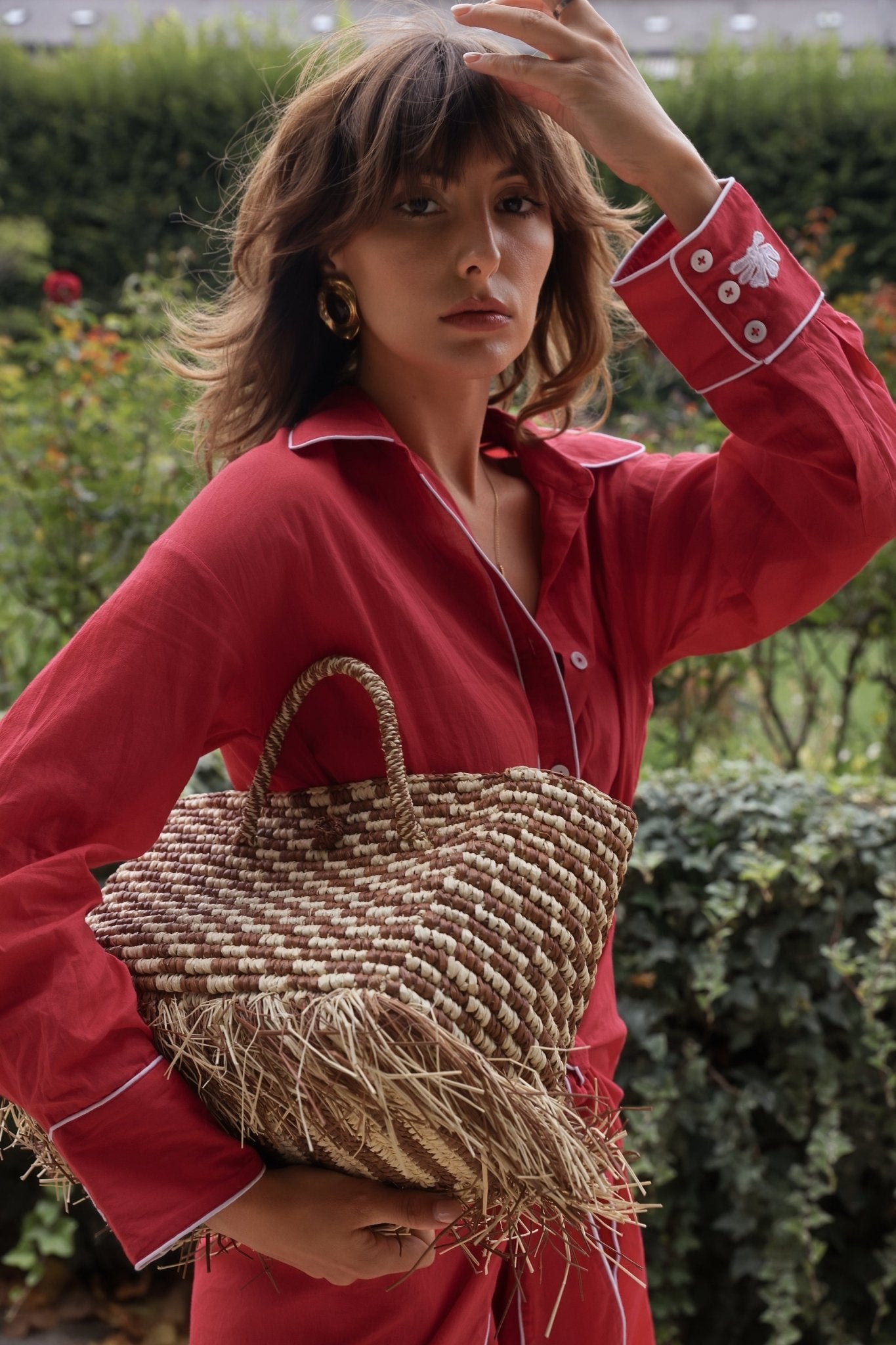 Crafted in 100% cotton voile, the rich raspberry hue is accented with clean white piping for a bold yet refined contrast