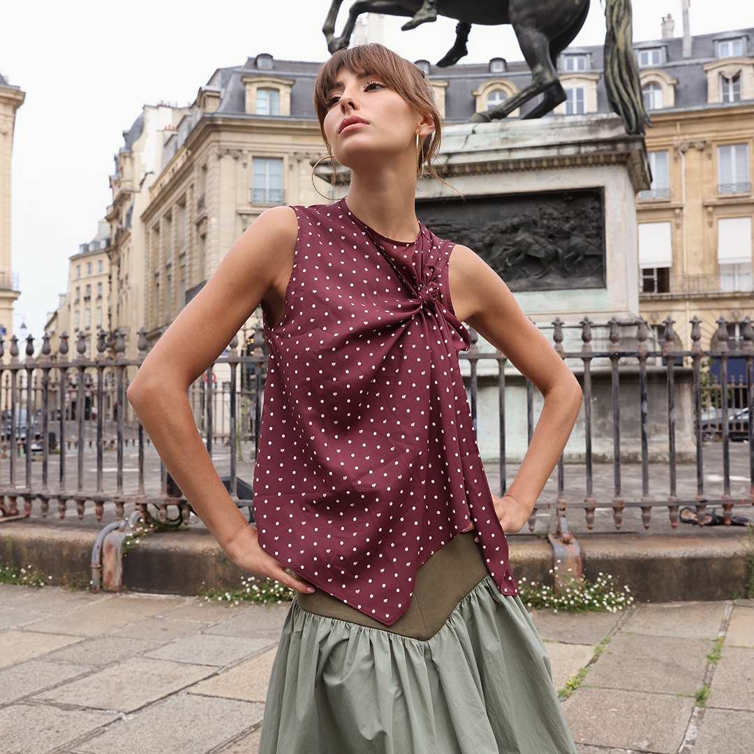The Scarlet Scarf Top is your go-to for stylish ease — a piece that balances playful elegance with contemporary design, ready to move with you through every occasion.